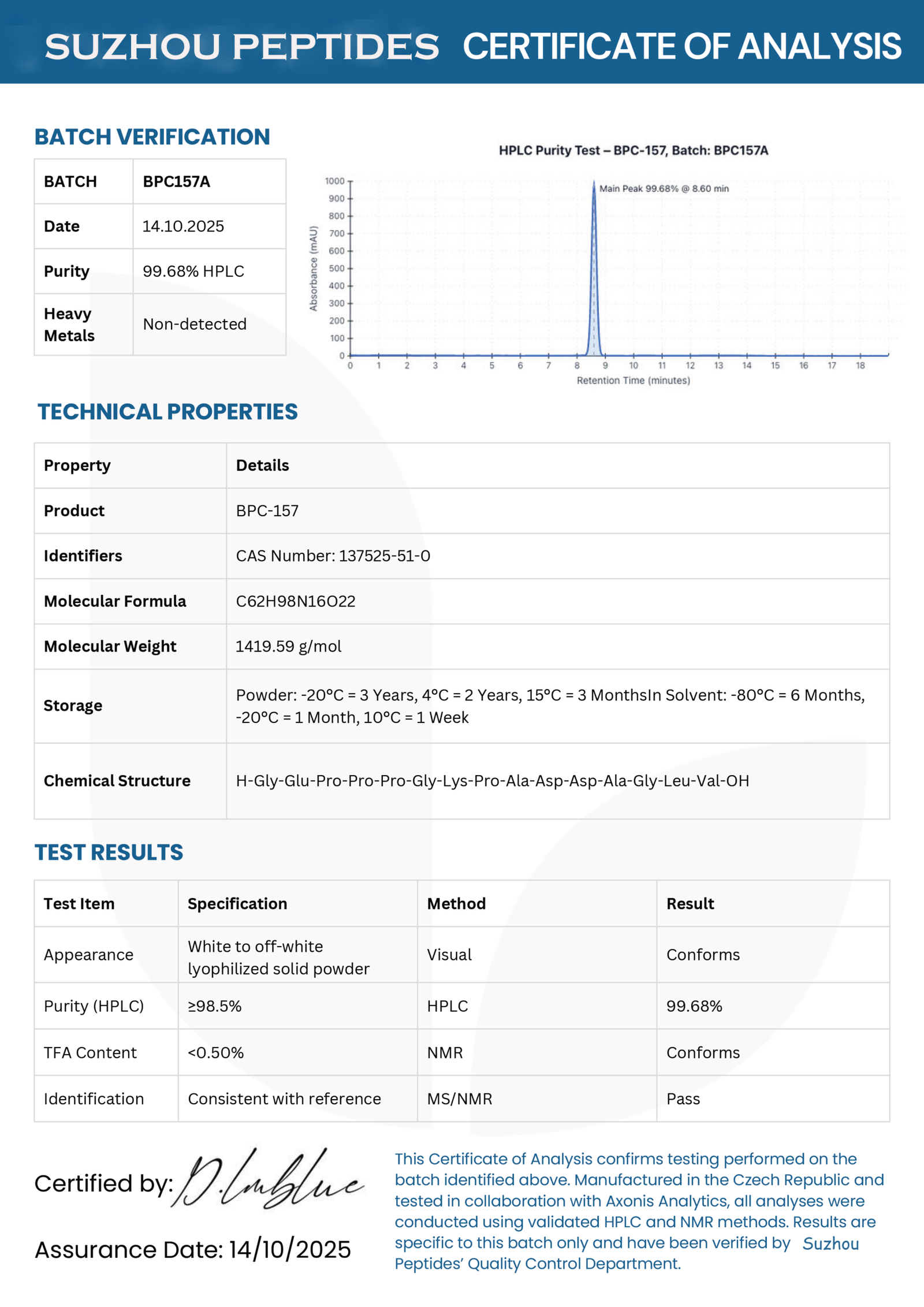 Certificate of Analysis (COA) available